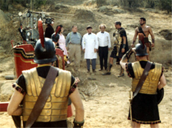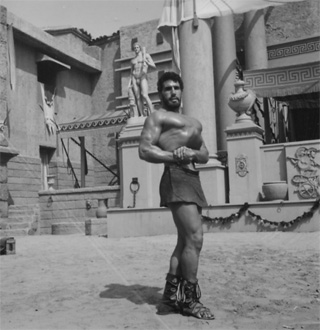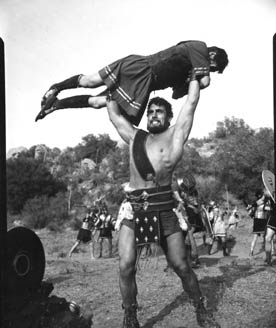 Three Stooges and Samson Burke fans are going to love this page! Below is a series of never before seen photographs, shot on the set during the filming of "The Three Stooges Meet Hercules". |